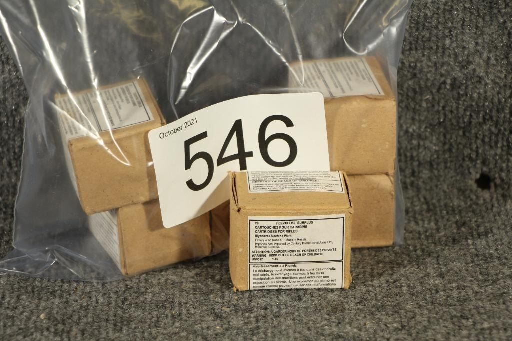 6 boxes surplus 7.62x39 FMJ, 20 rds each.