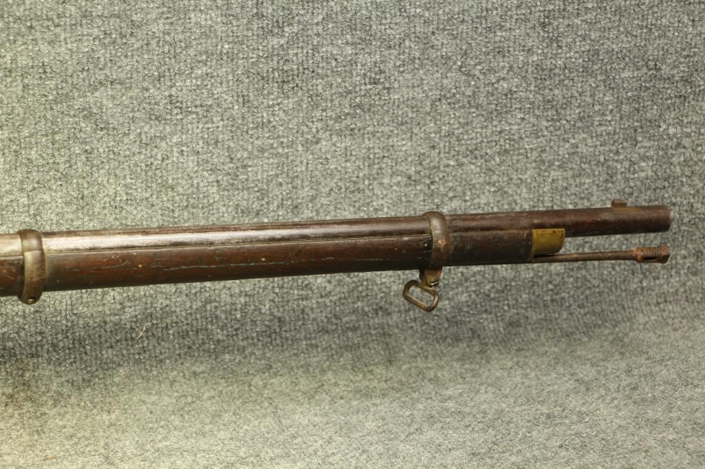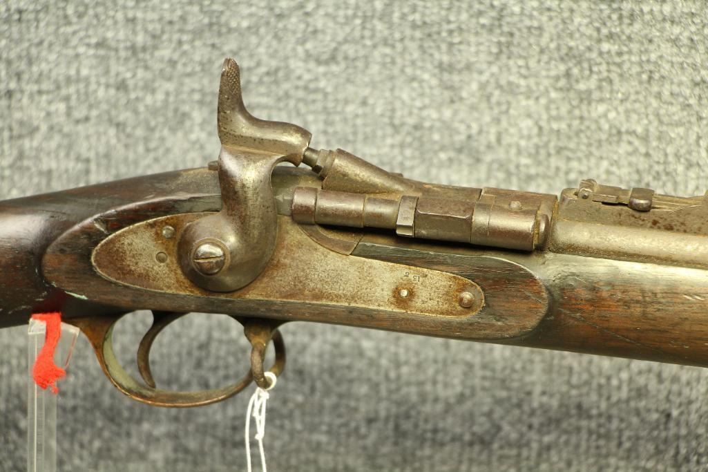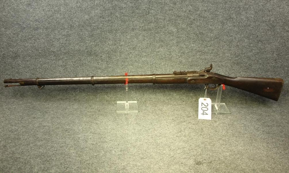 3 band, 3 groove conversion from muzzleloader.  All original and functional. Finish has turned light-brown with graying in spots. Dominon of Canada property stamp on stock. Small paint splatters on wood can likely be removed with care.  Antique status.
