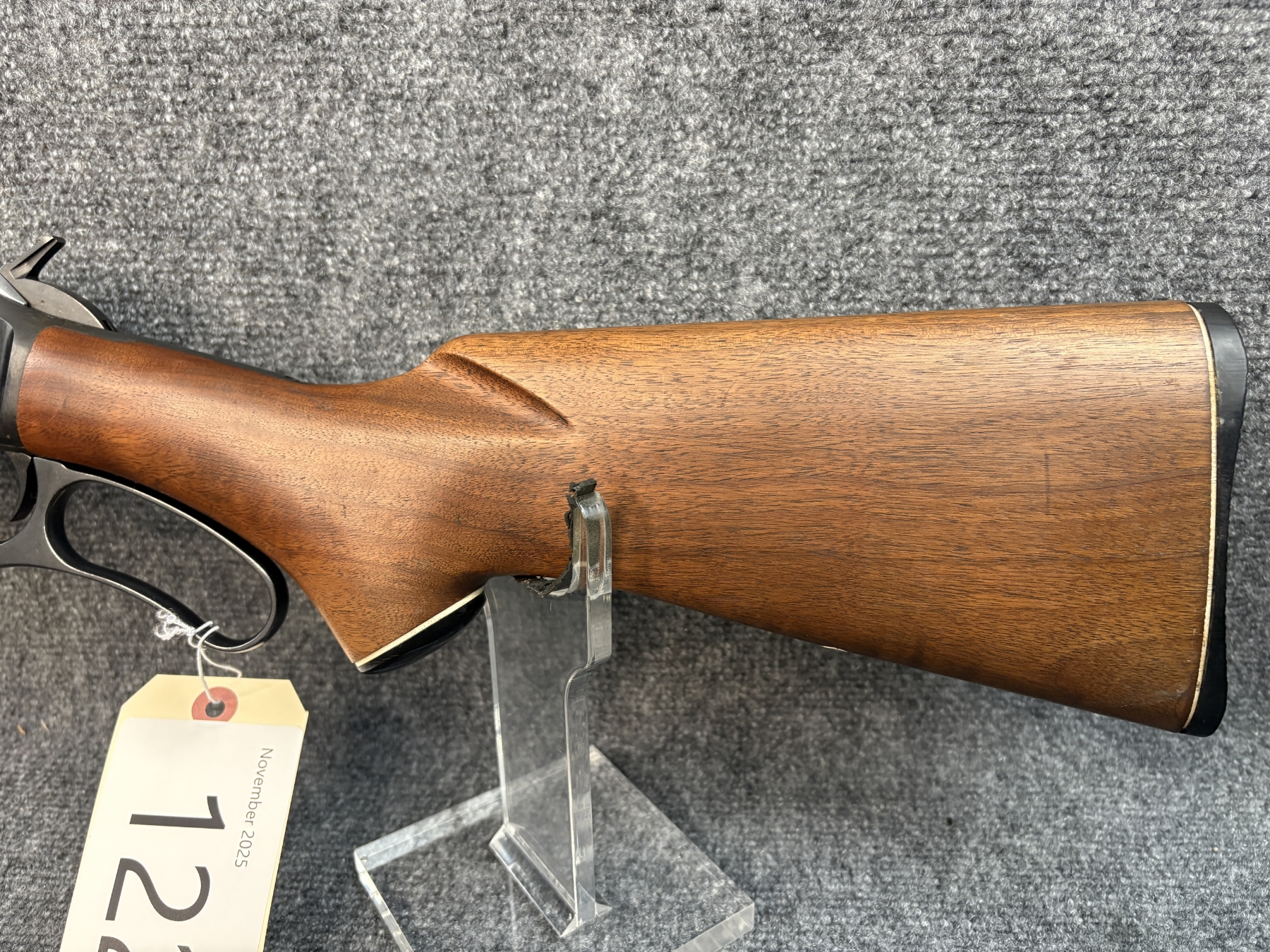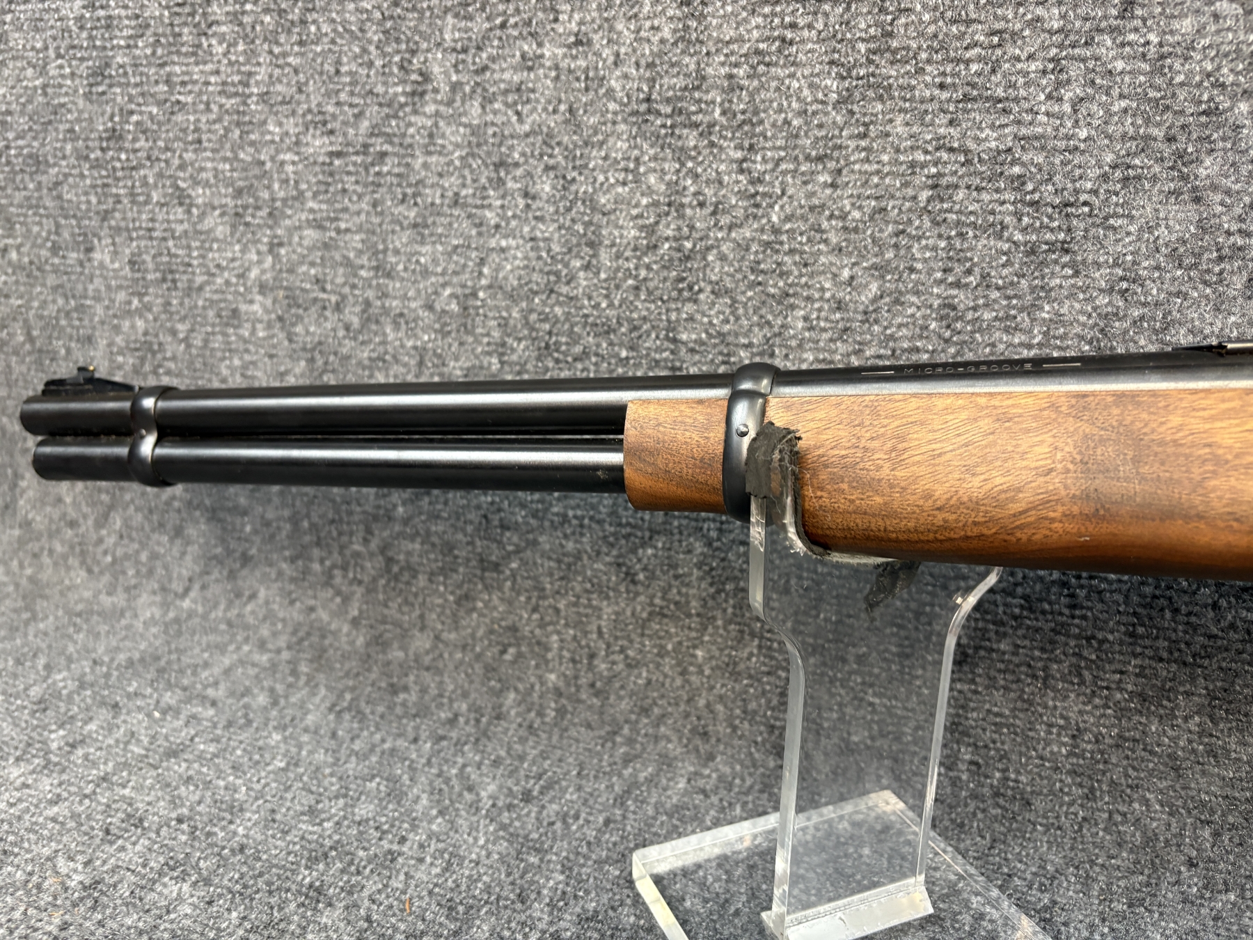 Only insignificant dings on the stock. The metal is pristine. Satin oil finish. Microgroove.