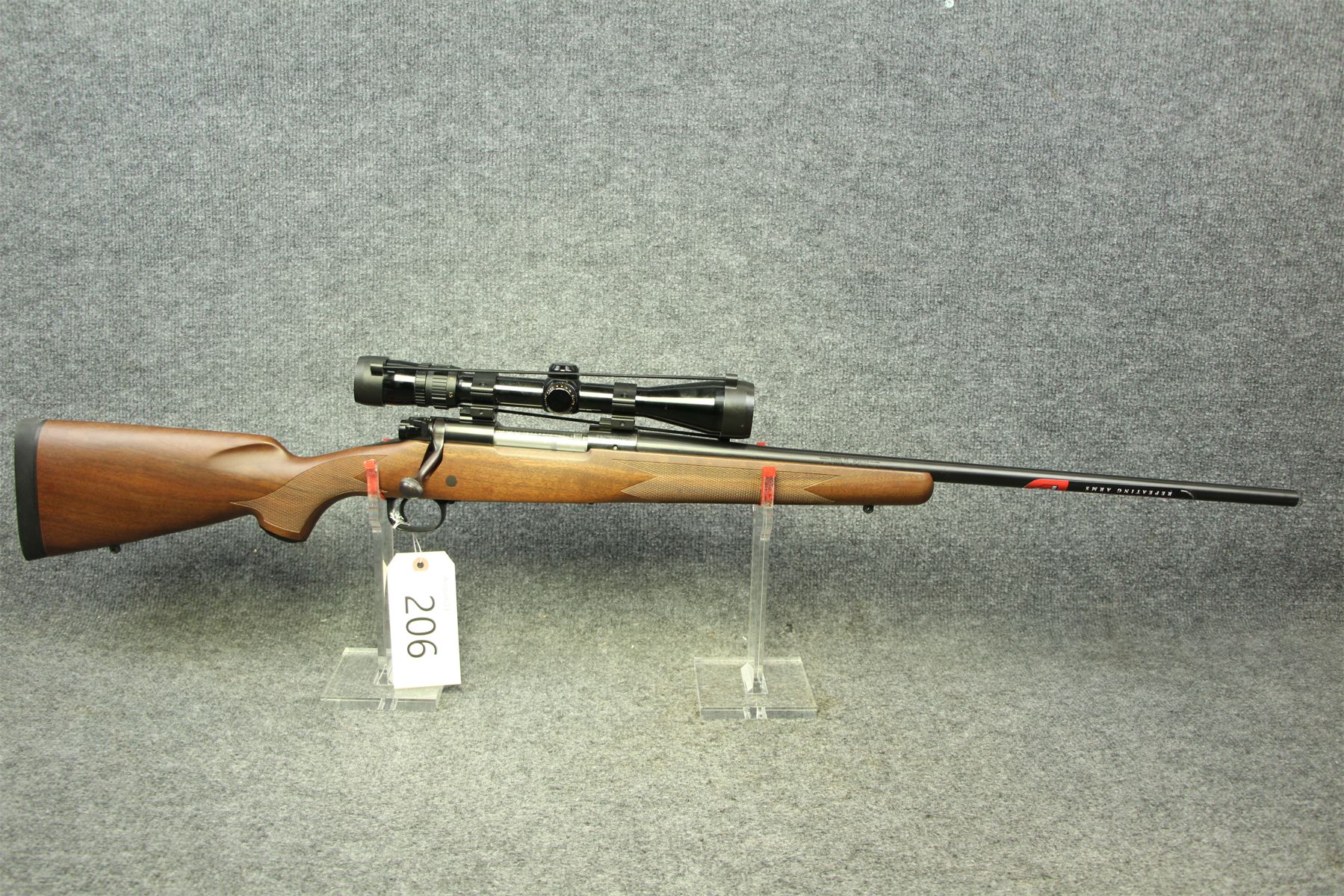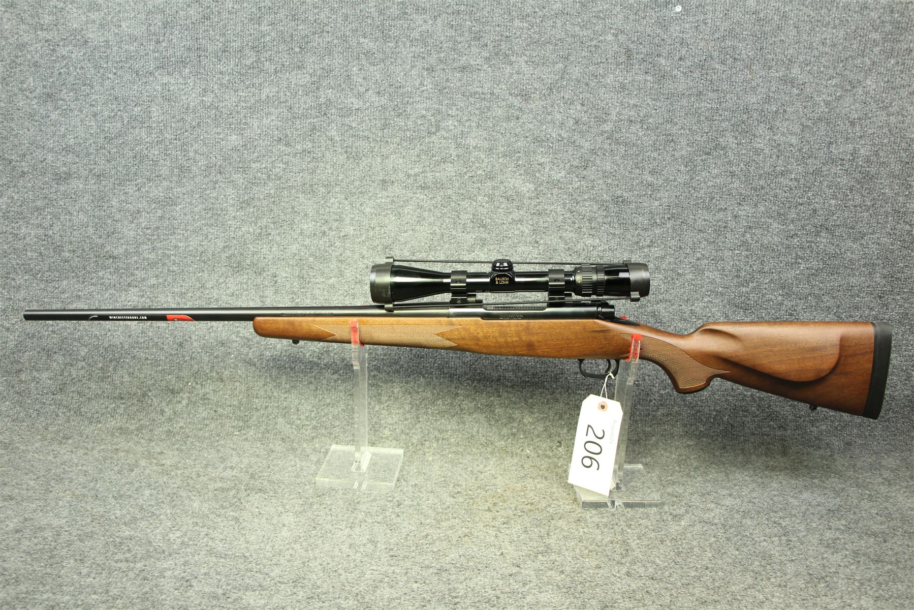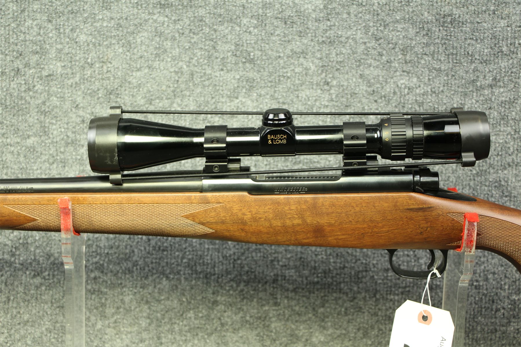 New unfired. There is not a mark on this gun. Comes with a Bausch and Lomb 1.5-6x scope with duplex crosshairs.